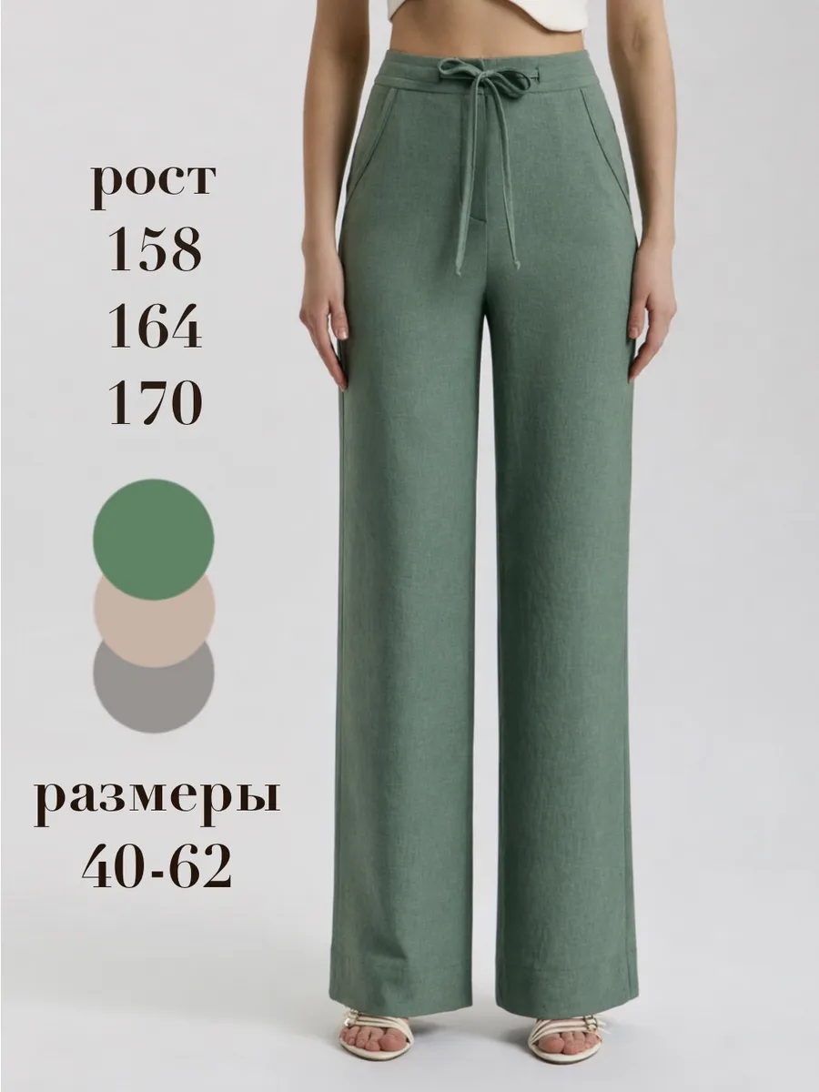 Длина брюк рассчитана на каблук. Например, при росте 170-172, если Вы не носите обувь на высоком каблуке, лучше выбрать рост 164, тогда не потребуется регулировать длину брюк. Брюки идут в размер, если Ваш размер переходный, например 44-46, то выбирайте 44 размер. Натуральная ткань имеет жатый эффект (мелкие заломы), которые не нужно пытаться разгладить! Откройте для себя универсальность и элегантность классических женских брюк. Эти штаны с завышенной талией и кулиской на поясе объединяют в себе классику и модные тенденции, предлагая вам легкие и свободные модели для офиса и повседневной жизни. Прямой и свободный крой этих брюк на завязках позволяет вам чувствовать себя уверенно, а немнущийся, струящийся и дышащий натуральный материал с высоким содержанием льна гарантирует дополнительное наслаждение в любую погоду. Дополнены карманами для удобства и практичности. Широкие брючины и прямой крой придают этим брюкам силуэт, который визуально удлиняет ноги и подчеркивает изящество фигуры. Благодаря разнообразию размеров, кулиска в талии, данная модель подойдет беременным, полненьким, женщинам больших размеров. Подойдут для высоких и не высоких, на рост от 158 до 176 см.